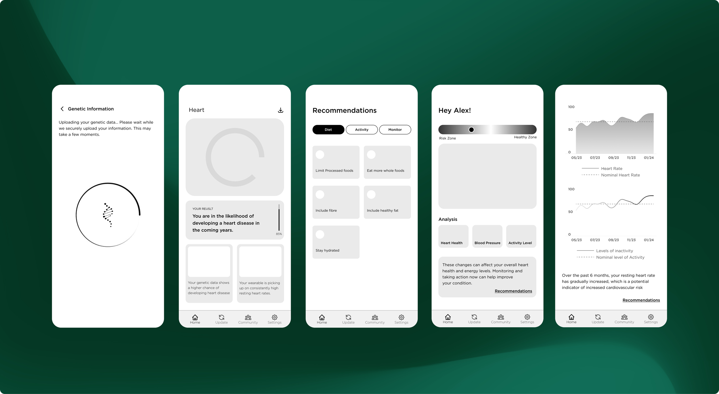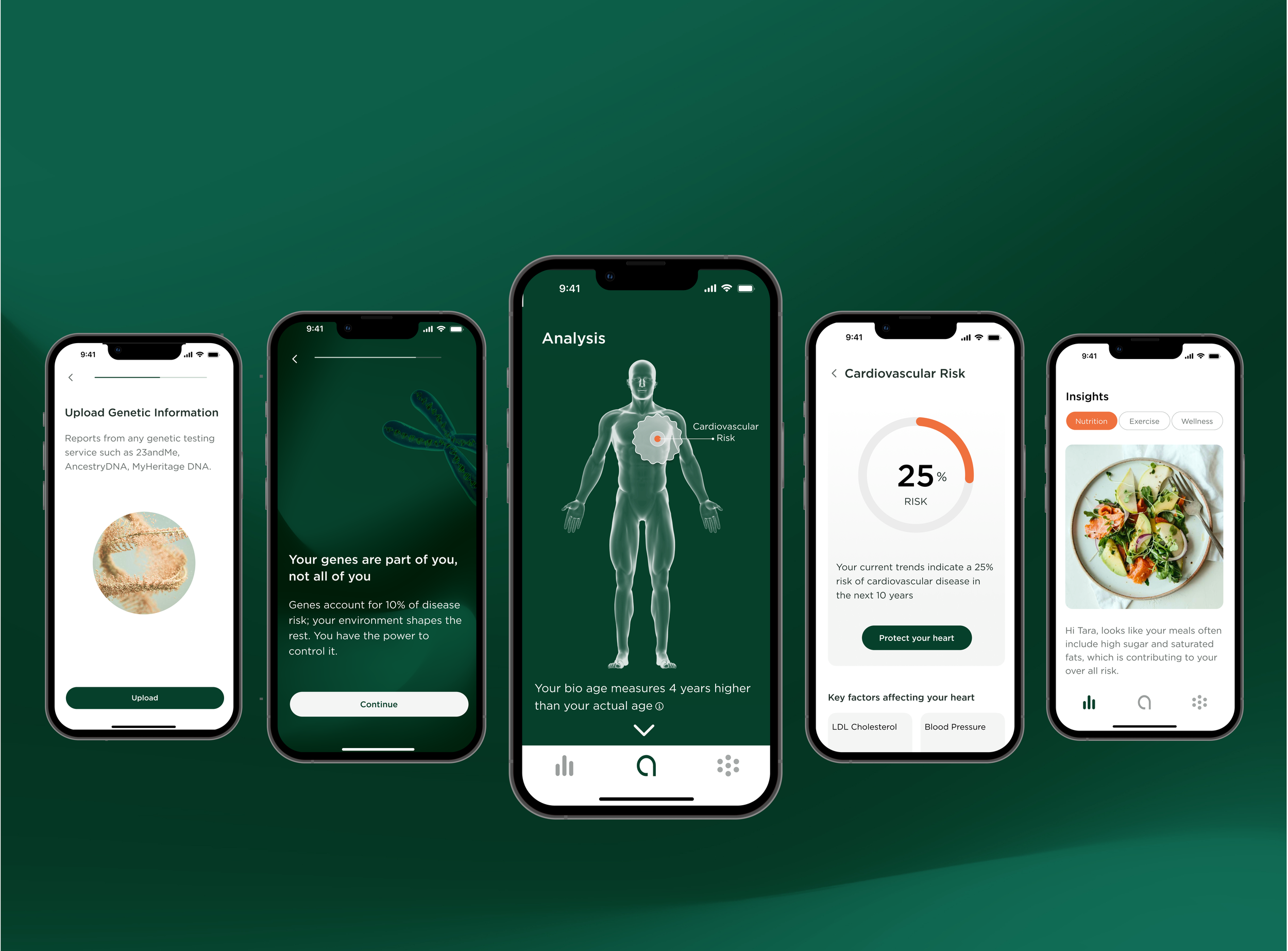 As part of onboarding, users securely upload their genetic, lab, and health records. The flow is designed